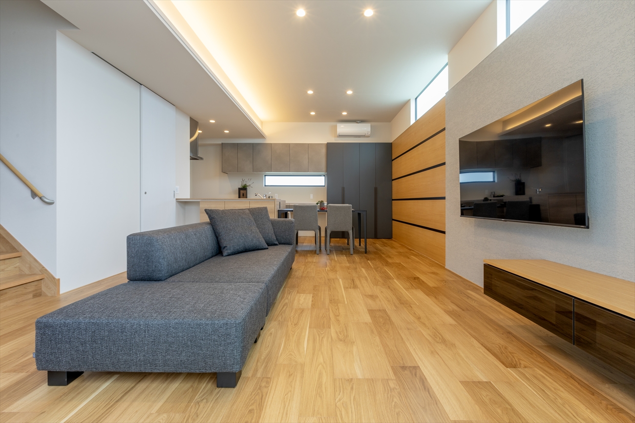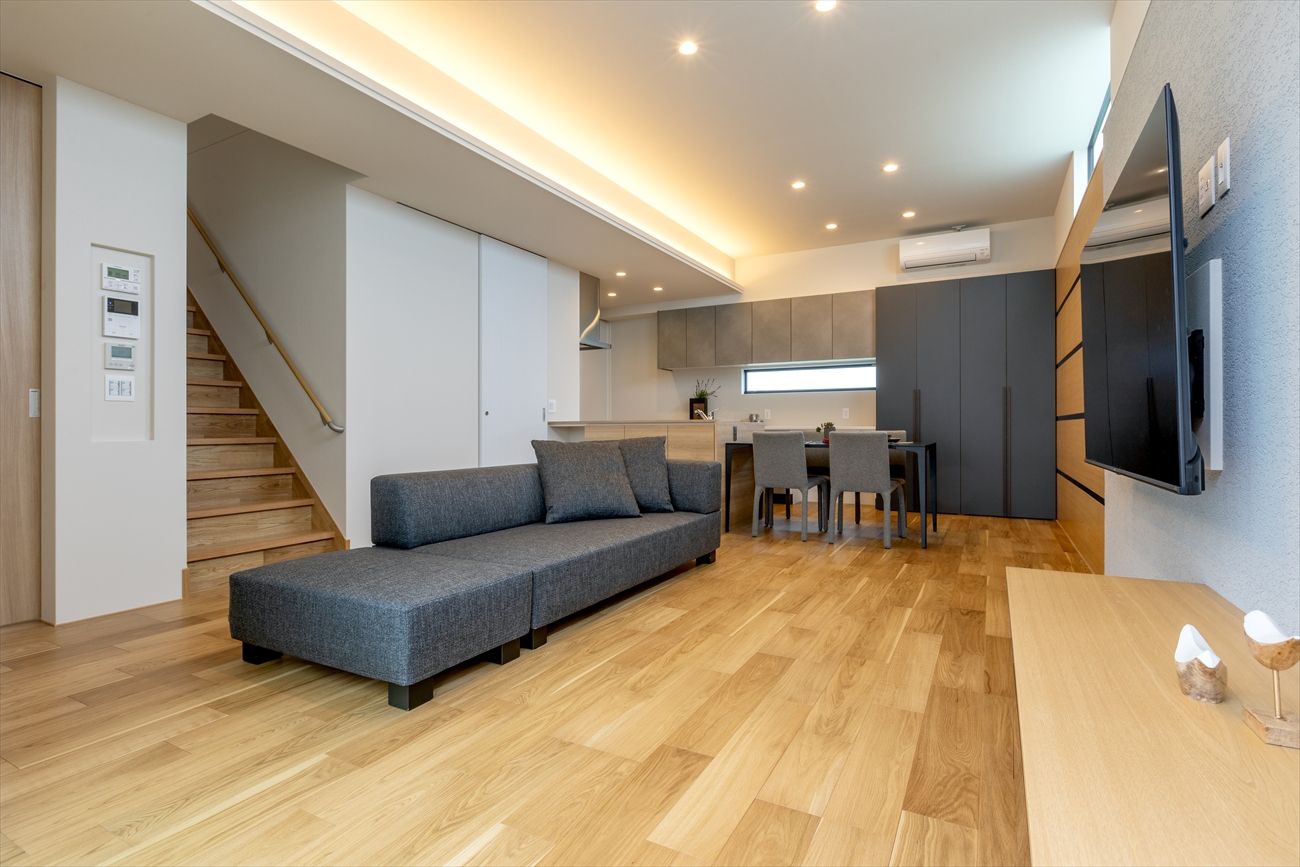 フラットな対面キッチンはリビングやダイニングに目が届きやすく、家族との会話も弾みます。