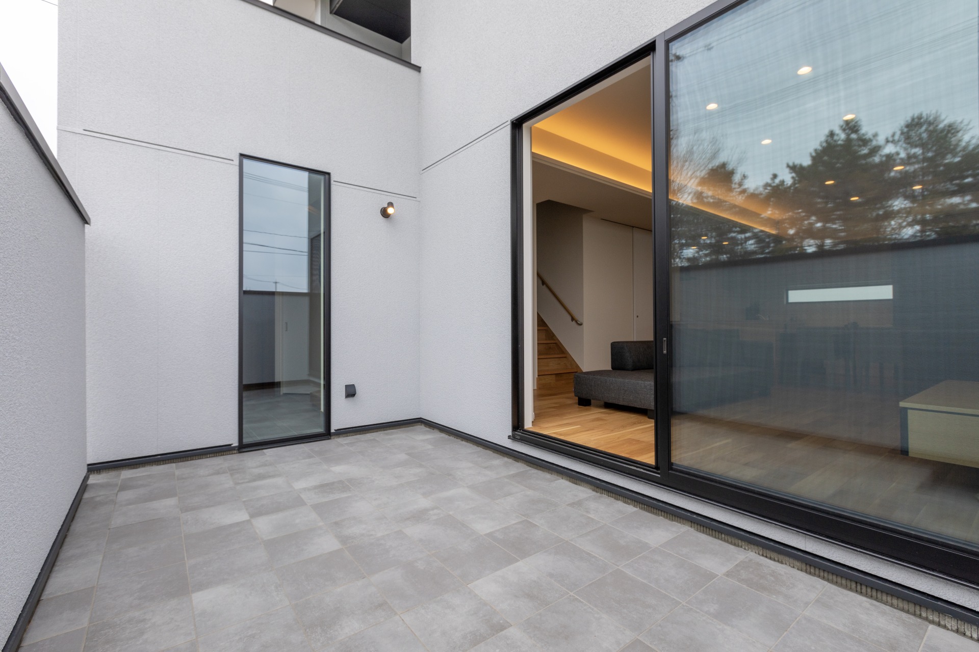 リビングと繋がる大きな窓から自然に出入りでき、室内外の一体感を楽しめます。